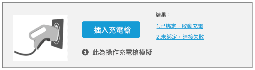 模擬器Server也會記錄下綁定紀錄,在下次該測試帳號登入時,便會呈現其APP已綁定隨插即充功能,並可直接進行插槍充電之模擬測試。