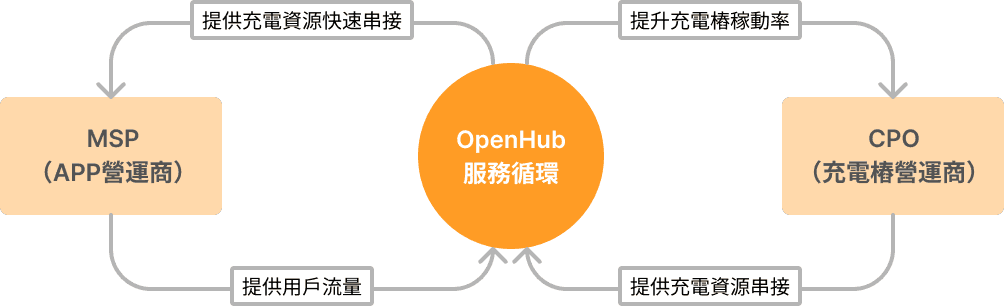 OpenHub品牌的創立是為了整合充電資源,解決APP應用商、充電樁營運商相互串接耗時、耗力的問題。